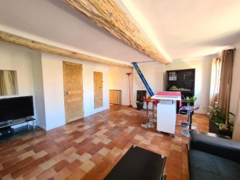 Situé au 3ème et dernier étage, cet appartement séduit par son cachet ancien : tomettes en terre cuite, poutres apparentes, cheminée ornementale, tout en offrant un confort actuel.