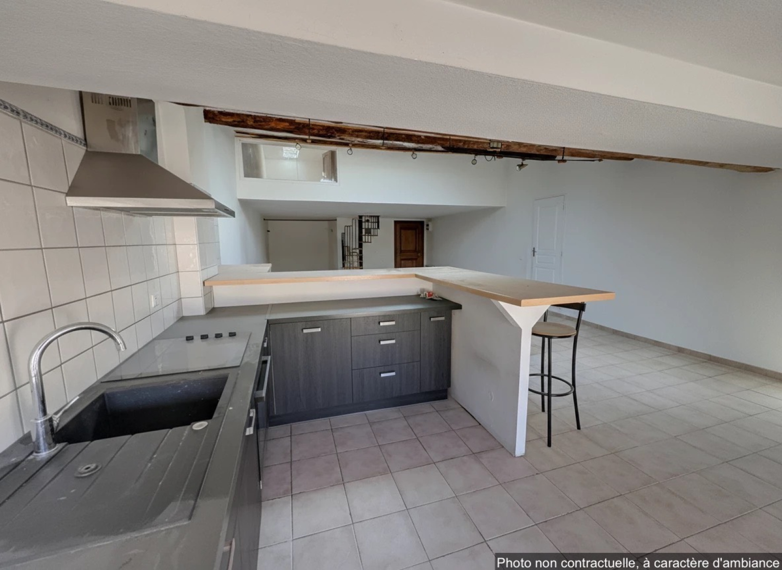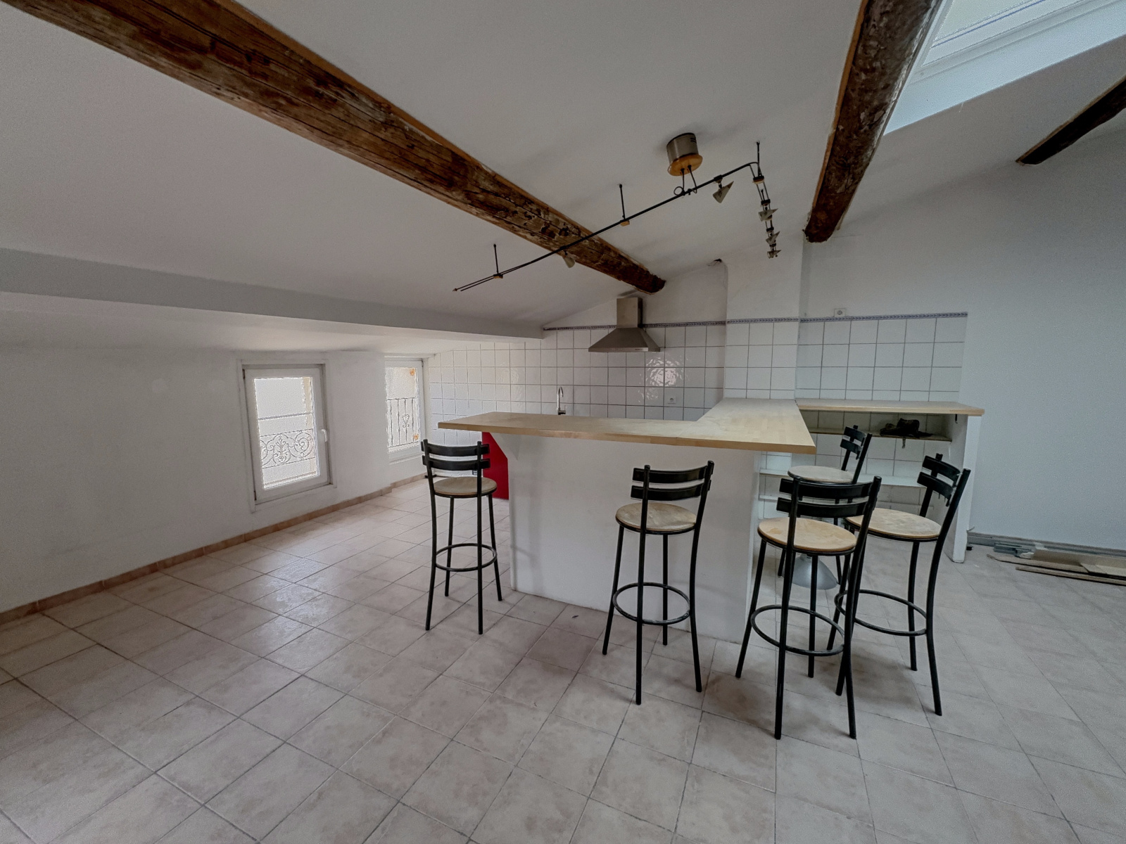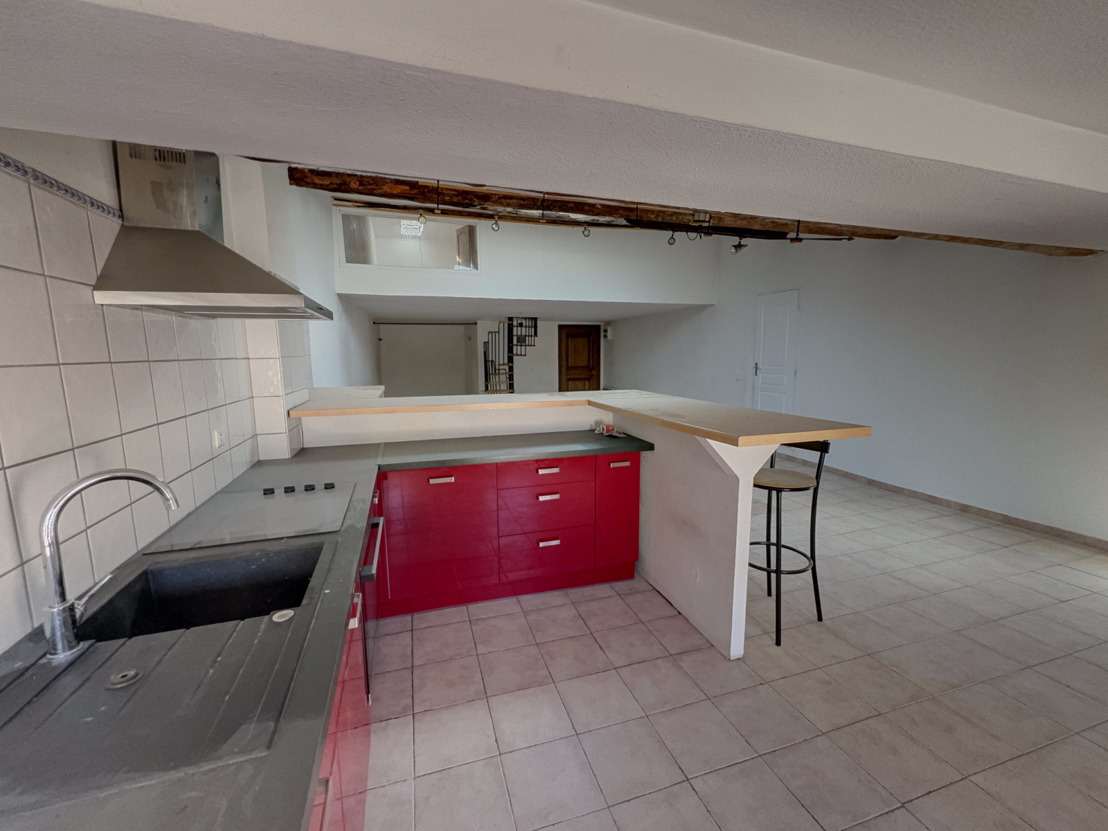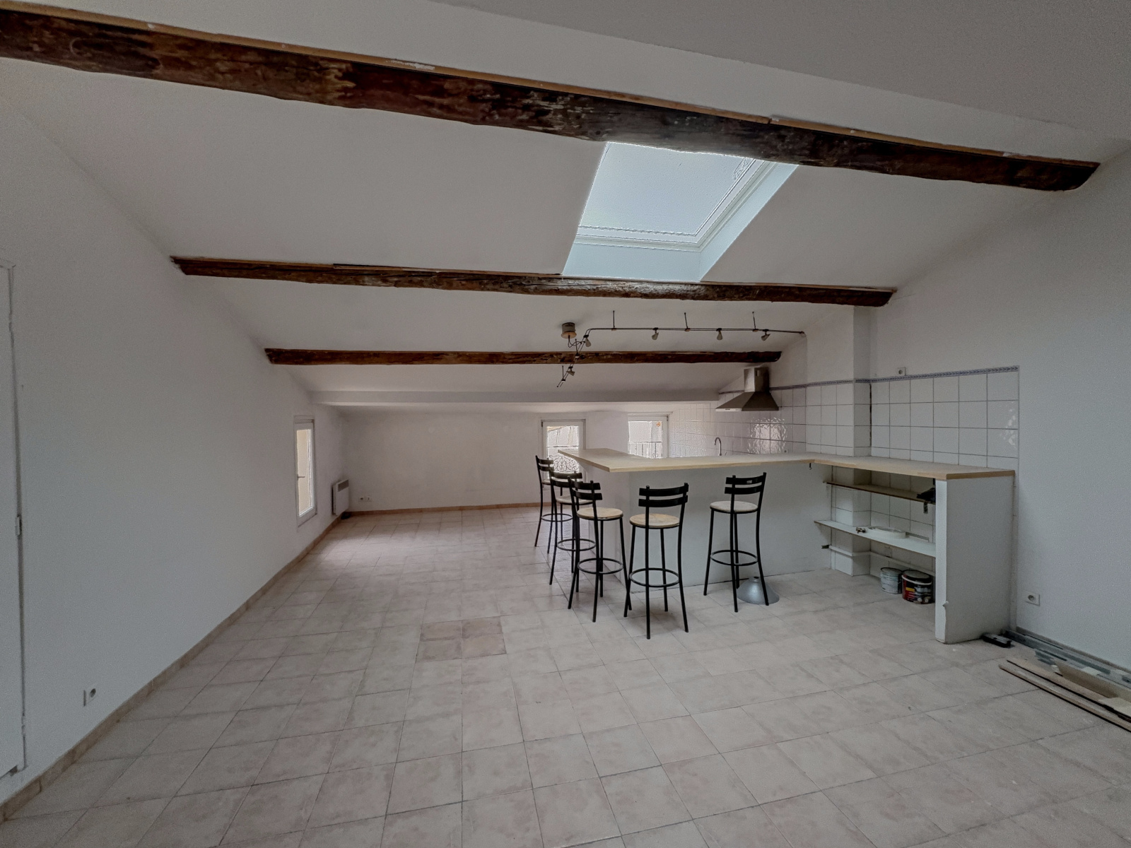 Description du bien: Situé au deuxième et dernier étage : Une entrée avec escalier, une spacieuse pièce de vie séjour / cuisine de plus de 60 m², baignée de lumière, une salle d’eau avec WC et au troisième étage en mezzanine, un coin nuit offrant deux chambres, idéales pour une famille, un couple ou un projet locatif.