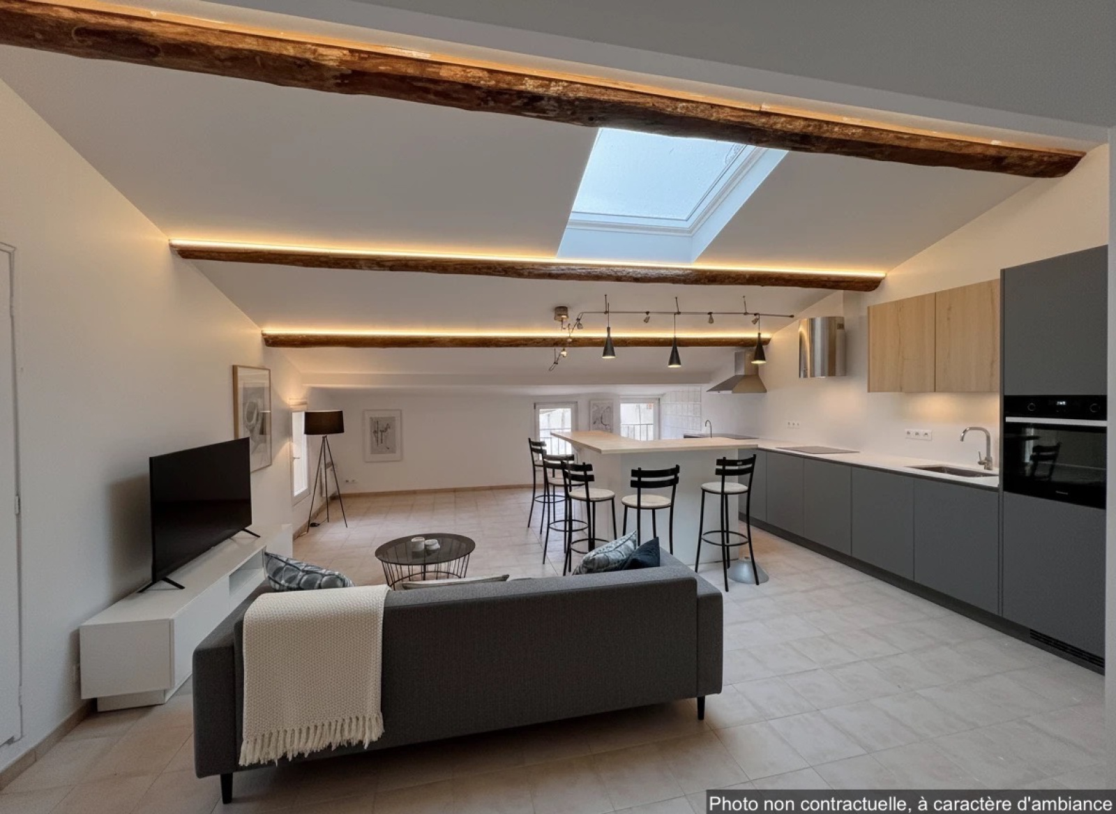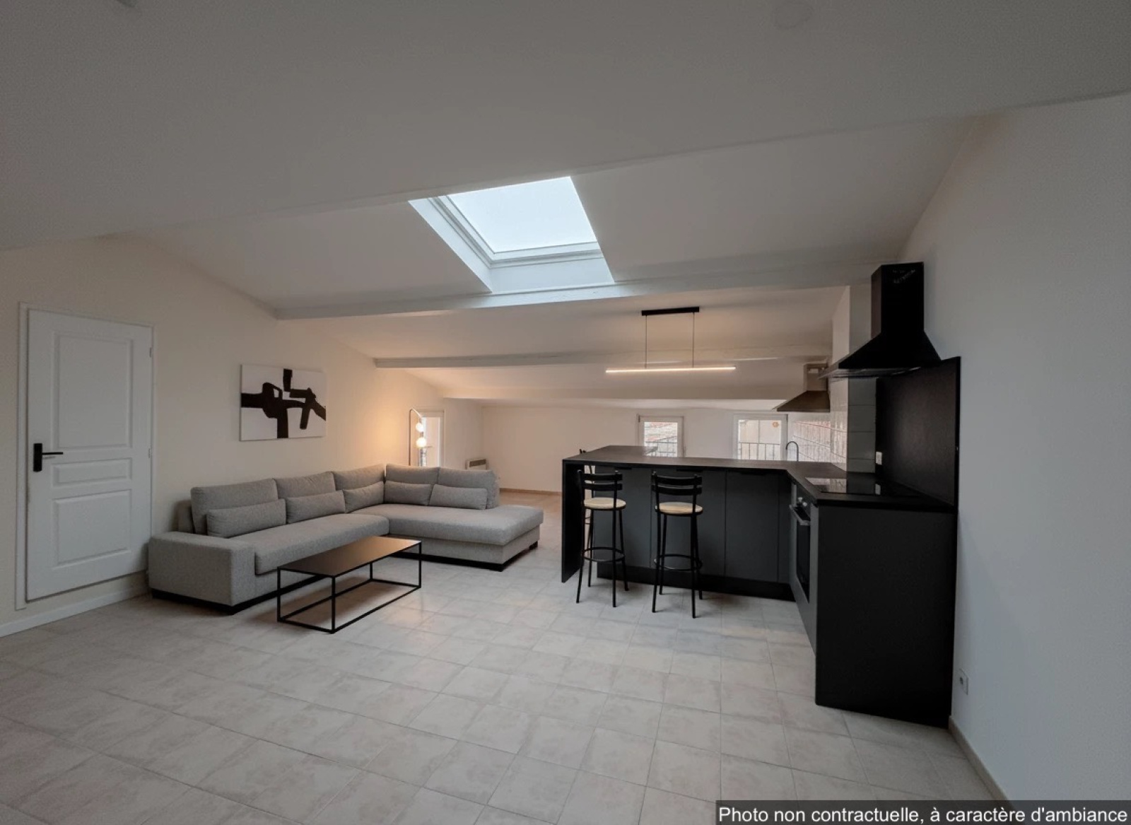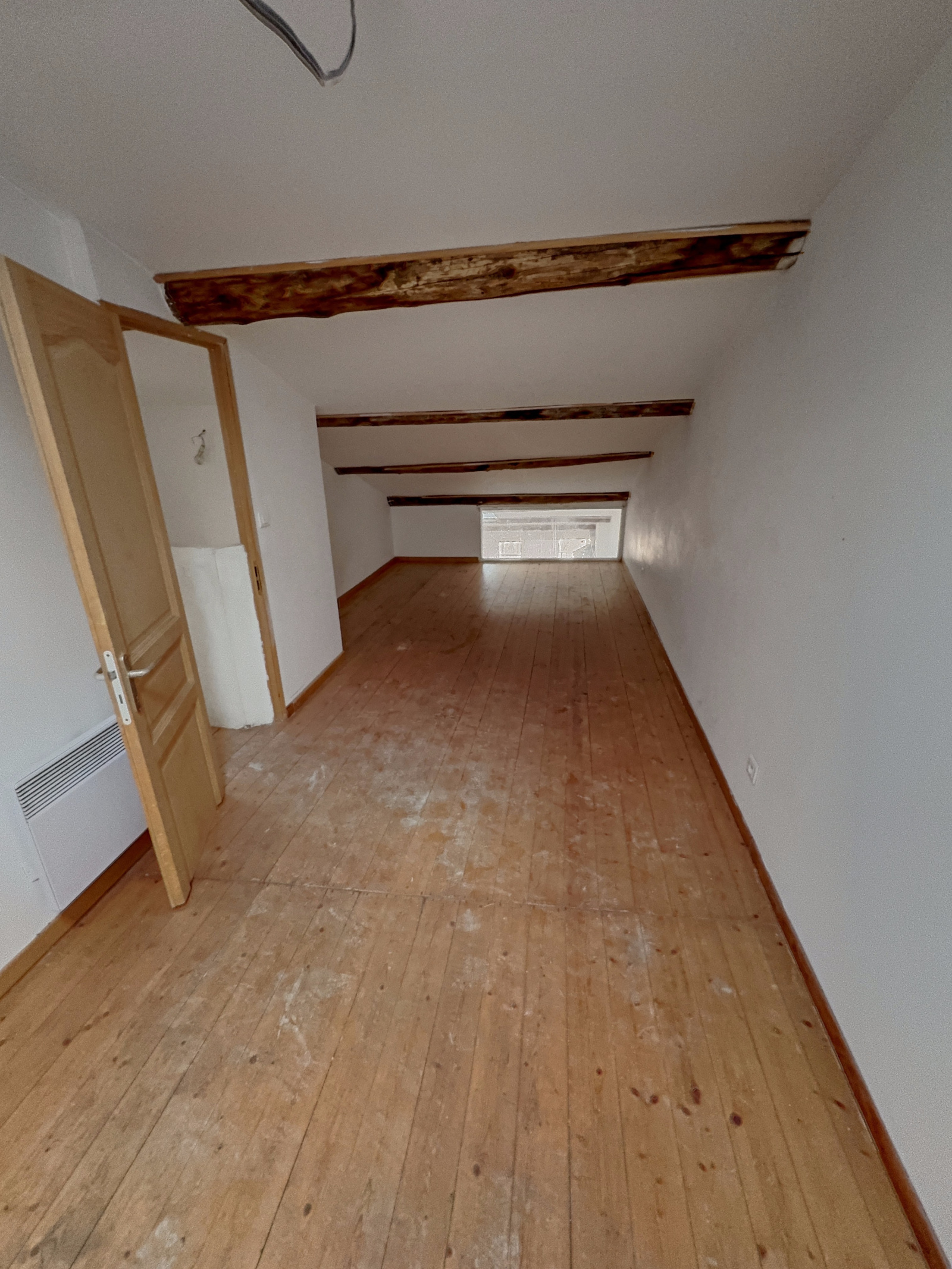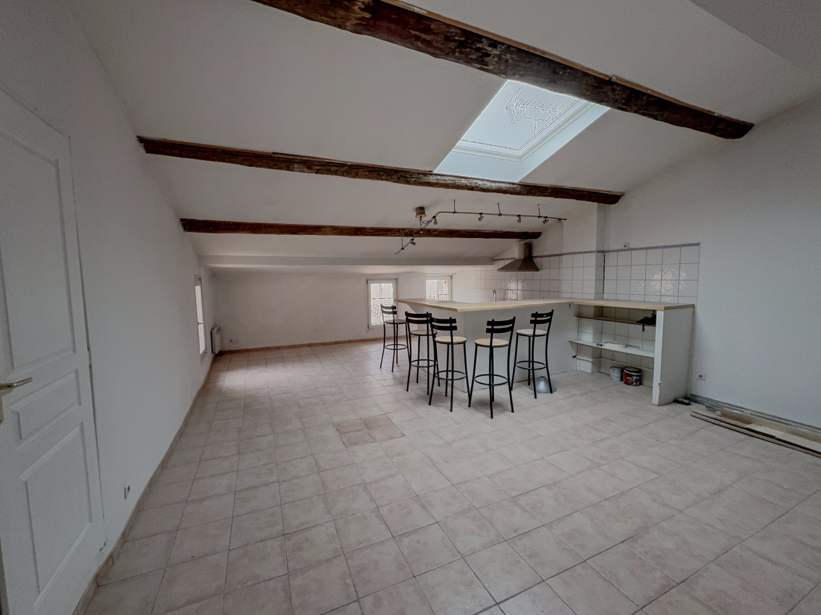 Description du bien: Situé au deuxième et dernier étage : Une entrée avec escalier, une spacieuse pièce de vie séjour / cuisine de plus de 60 m², baignée de lumière, une salle d’eau avec WC et au troisième étage en mezzanine, un coin nuit offrant deux chambres, idéales pour une famille, un couple ou un projet locatif.