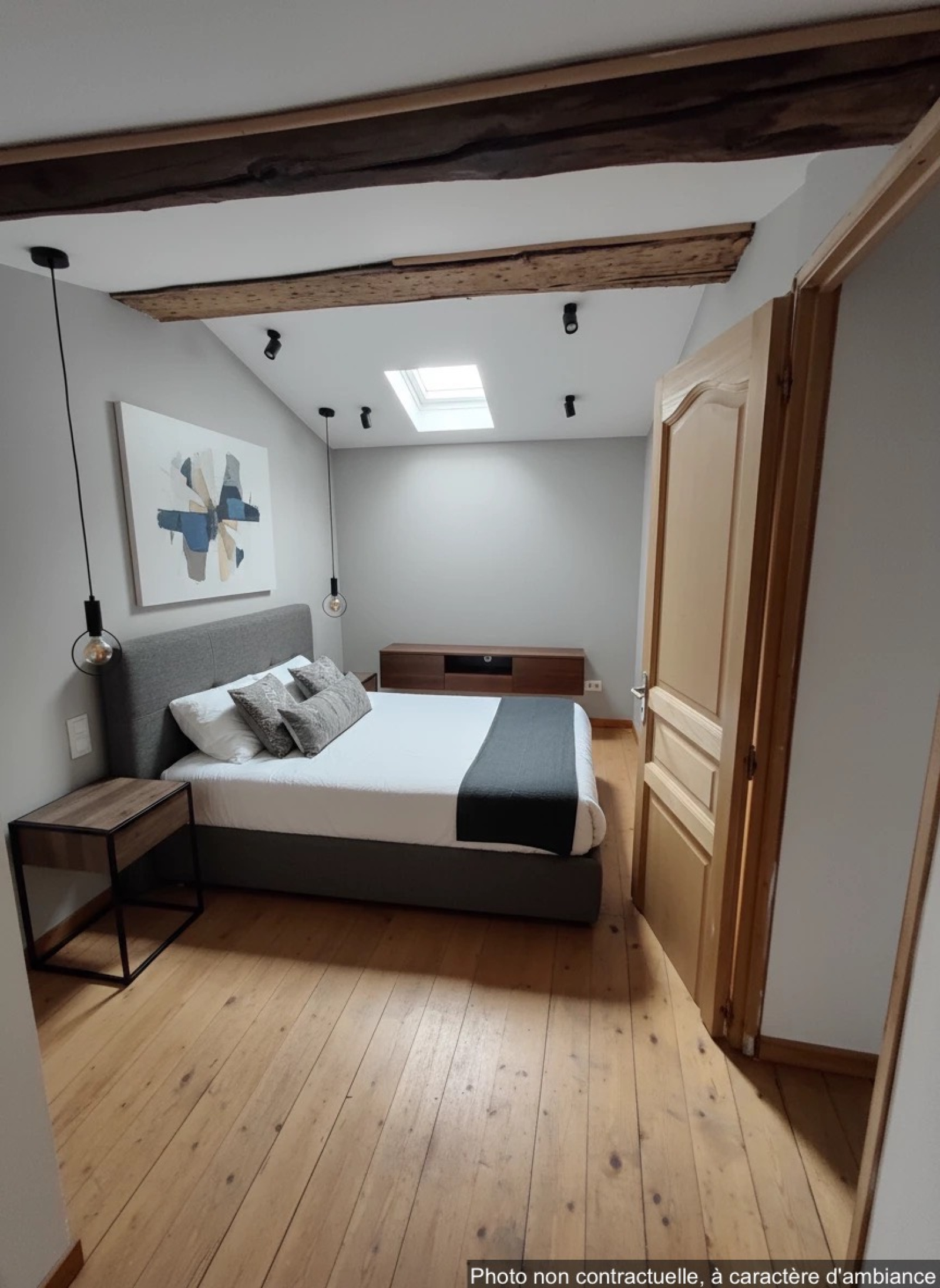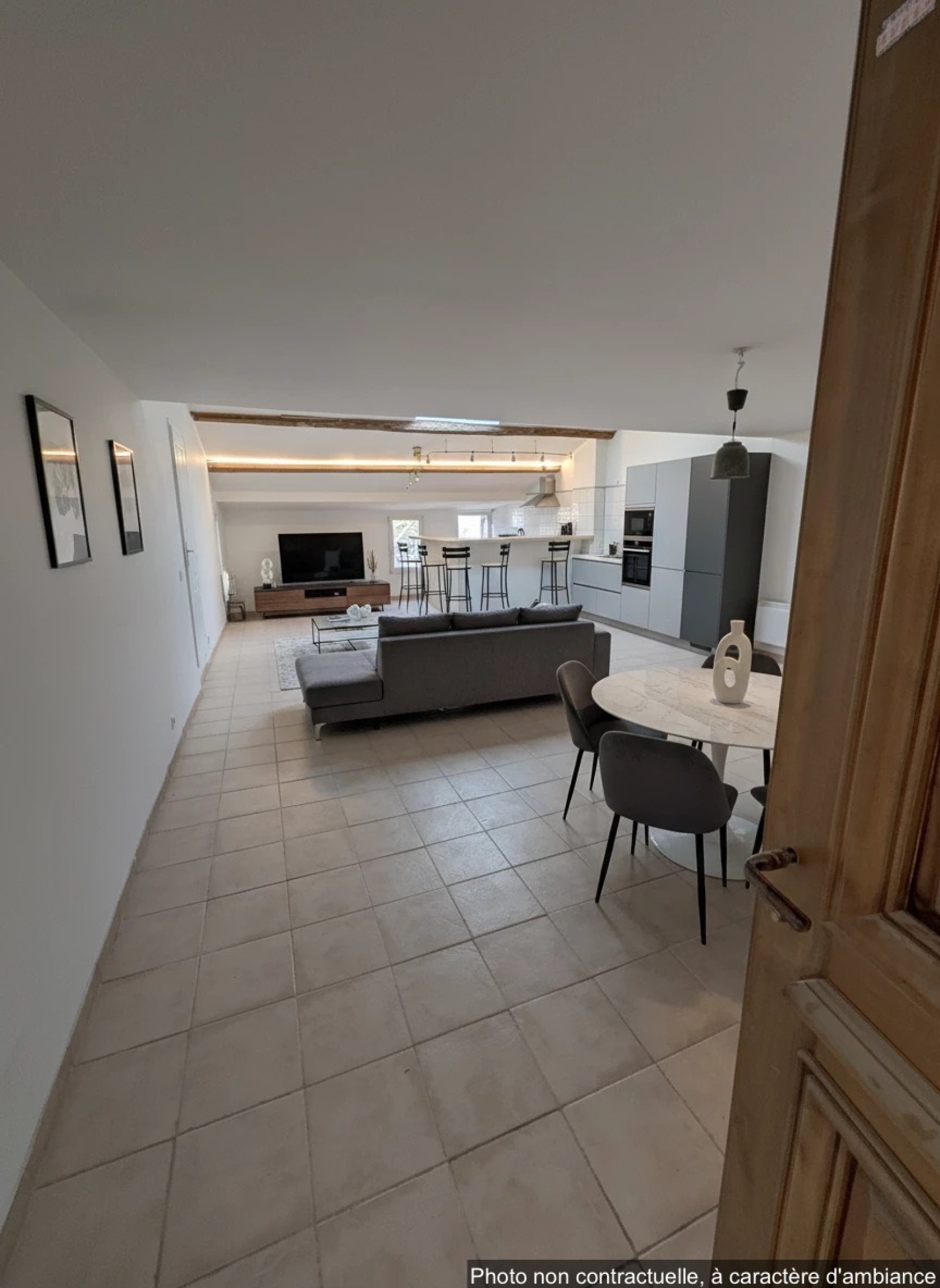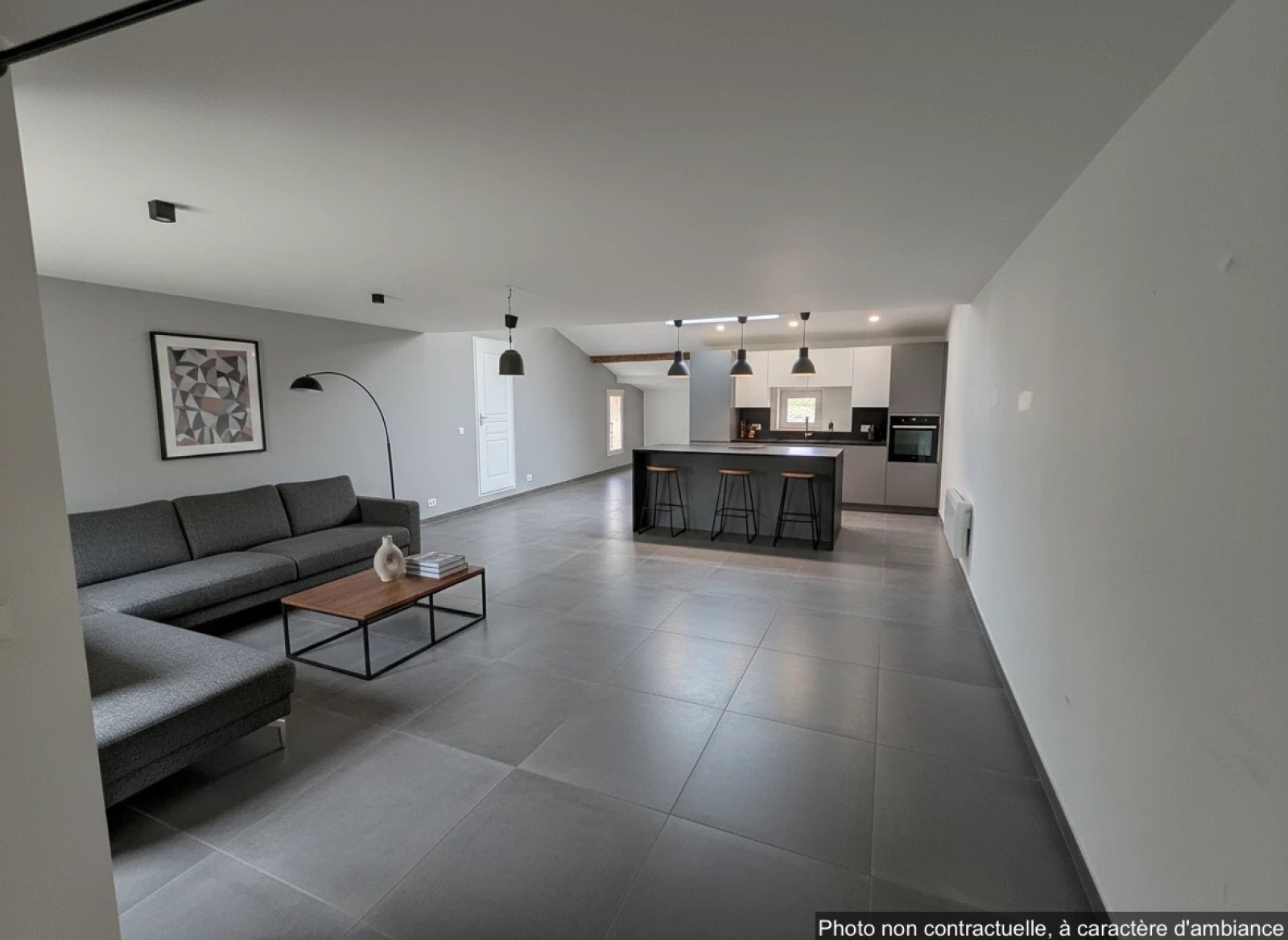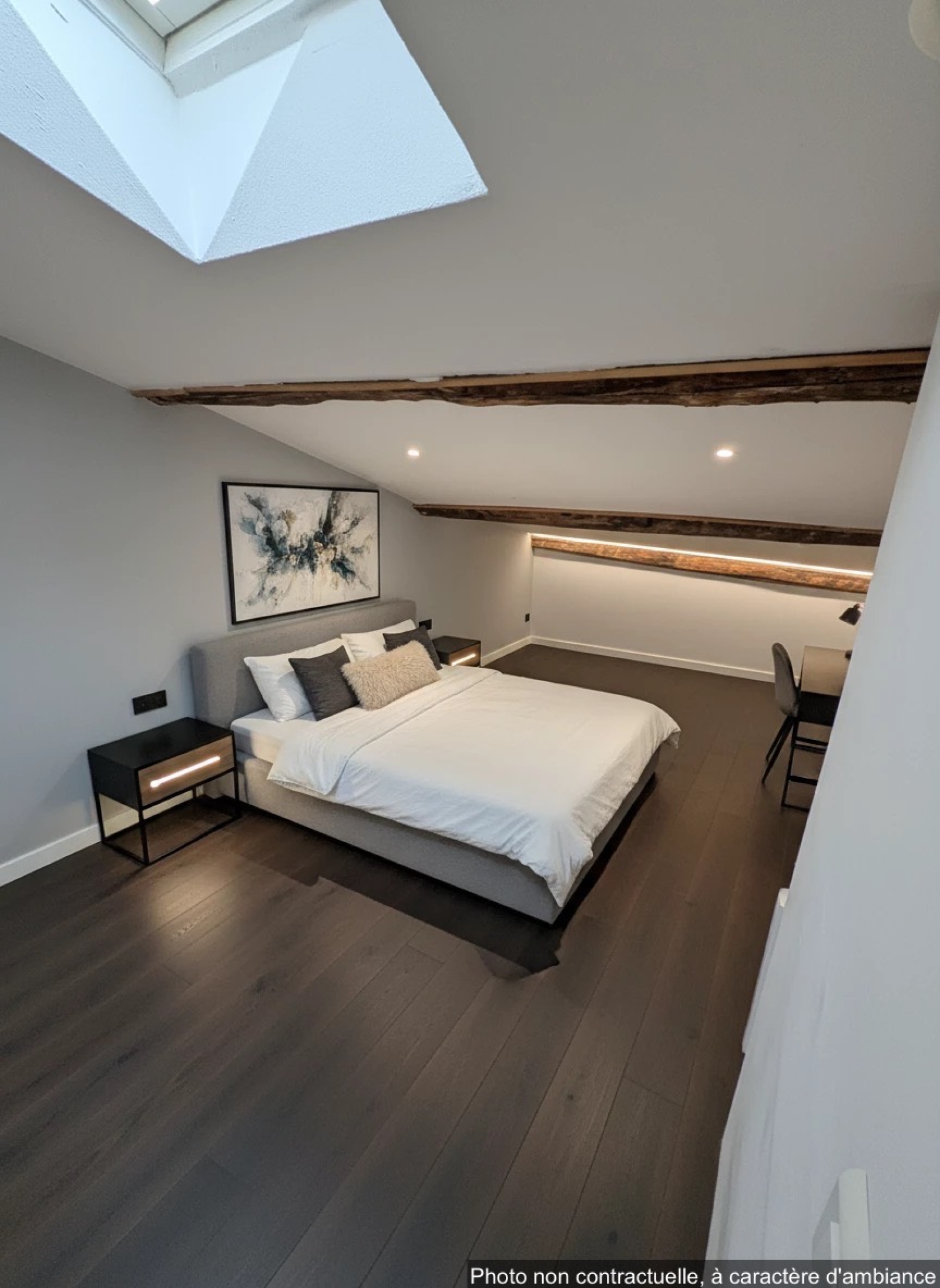 Description du bien: Situé au deuxième et dernier étage : Une entrée avec escalier, une spacieuse pièce de vie séjour / cuisine de plus de 60 m², baignée de lumière, une salle d’eau avec WC et au troisième étage en mezzanine, un coin nuit offrant deux chambres, idéales pour une famille, un couple ou un projet locatif.